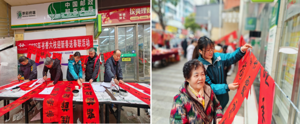 六盤水市六枝特區分公司聯合特區總工會、書法家協會,在人民路郵政支局開展寫“福”送春聯活動。書法老師們筆走龍蛇,創作出一幅幅滿含祝福的作品。居民們圍聚四周,認真欣賞、精心挑選,工作人員則熱情協助。除了現成的吉祥春聯,還能根據居民的個性化需求定制,大家對墨香四溢的手寫春聯贊不絕口,活動現場年味十足,溫馨又喜慶。