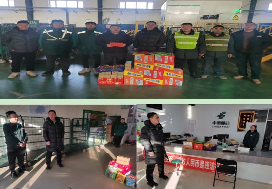 1月25日,通遼市郵政分公司黨委書記、總經理康雪峰率工會副主席譚志剛一行先后來到郵件處理中心、民航路攬投部、西門支局和站前支局,向奮戰在一線的干部職工送去新春祝福。在郵件處理中心,康雪峰總經理對大家一年來所付出的辛苦表示感謝,叮囑大家注意防寒保暖,牢記安全生產第一,緊盯生產線,確保萬無一失。在民航路攬投部、西門支局和站前支局,康雪峰總經理與職工們親切交流,詳細詢問春節期間加班加點及經營目標完成情況,并親手將慰問款和慰問物資送到職工手上,同時強調要合理安排輪班,抓好安全生產,關心職工生活,在不影響工作的基礎上,確保職工度過一個歡樂祥和的春節。