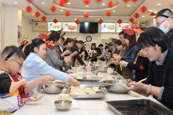 走進員工飯堂,映入眼簾的是一派喜氣洋洋的景象:紅彤彤的燈籠高高掛起,寓意著新的一年紅紅火火;長桌上,餃子皮、肉餡、蔬菜等食材一應俱全,等待著員工們大展身手。陽江市分公司領導班子也早早來到現場,與員工們一起挽起袖子,加入到這場歡樂的包餃子“大賽”中。大家互相交流包餃子的技巧,分享生活中的趣事,現場氣氛熱烈而溫馨。圓潤可愛的元寶餃、小巧精致的柳葉餃、創意十足的花邊餃……各種形狀的餃子很快就擺滿了托盤,每一個餃子都飽含著大家對新年的美好期許。