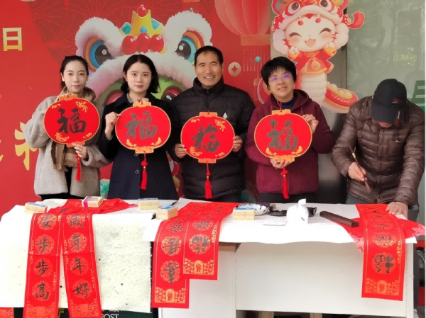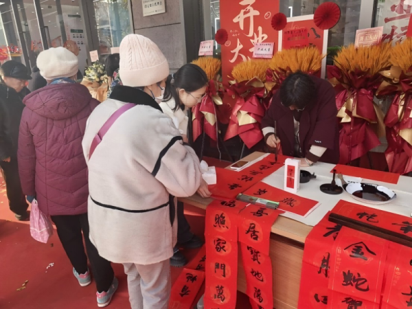 網點內,紅燈高掛,處處洋溢著節日的喜慶與和諧。書法大師們憑借精湛的書法技藝,為前來辦理金融業務的客戶送上飽含深情祝福的文化墨寶。這些對聯不僅充分展現了中華書法藝術的獨特魅力,更承載著郵政人對廣大客戶最誠摯的新年祝福?;顒蝇F場氣氛熱烈,歡聲笑語不斷,客戶們對活動給予了高度評價,紛紛表示在辦理業務的同時還能感受到傳統文化的熏陶,收獲滿滿。