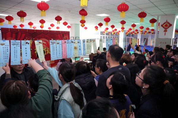 活動當天,職工活動中心裝扮一新,一排排喜慶的燈籠整齊懸掛,與精致的迷條相互點綴,1500條燈謎內容涉及廣泛,形式多樣,謎面應時應景,科學通俗,職工們熱情高漲,紛紛穿梭于謎條之間,或駐足沉思,或相互交流探討,不一會兒,便有不少人猜出謎底,興高采烈地前往兌獎處兌換獎品。猜對的職工歡呼雀躍,猜錯的也不氣餒,繼續開動腦筋,整個場面熱鬧非凡。