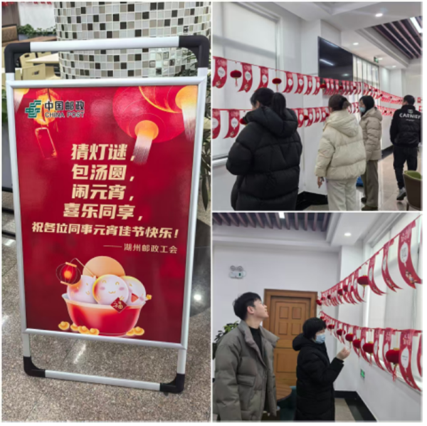 2月12日中午,湖州市郵政工會在職工食堂舉辦了一場別開生面的鬧元宵、包湯圓、猜燈謎活動,吸引了100余名員工踴躍參與,現場洋溢著濃厚的節日氛圍,為蛇年新春增添了一抹亮麗色彩。