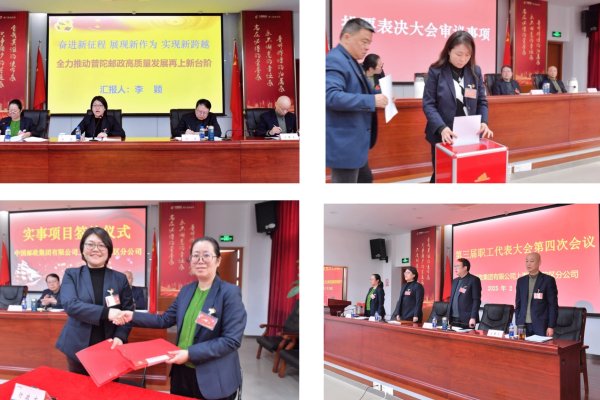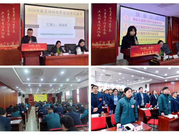 2025年2月20日,中國郵政集團有限公司上海市普陀區分公司第三屆職工代表大會第四次會議隆重召開。本次大會深入學習貫徹黨的二十大、二十屆二中三中全會精神,全面落實市分公司2025年工作會議暨三屆三次職代會要求,總結2024年全年工作、分析形勢,部署2025年重點任務。拼搏競進、勇毅前行,扎實推進各項改革發展工作,推動重點業務提質增效、提升管理服務水平。認真落實企業民主管理制度,充分發揮職工代表參政議政作用,正確履行職工代表職責,共同努力完成本次大會各項任務,為推動普陀郵政2025年各項工作目標而奮勇前進。