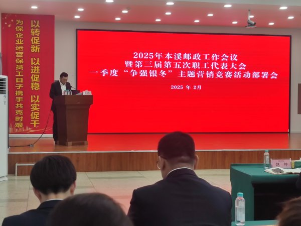 本溪市郵政分公司第三屆第二次職工代表大會于2025年2月18日隆重召開,55名職工代表參加了大會。市公司副總經理、工會主席孫守輝主持會議。