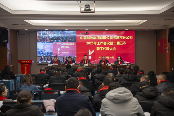 2月20日,湘潭郵政組織召開2025年工作會(huì)議暨二屆五次職代會(huì),本次會(huì)議以現(xiàn)場(chǎng)加電視電話會(huì)議形式召開,市分公司領(lǐng)導(dǎo)班子、全市四級(jí)副以上干部、職工代表及獲獎(jiǎng)人員等參加會(huì)議。