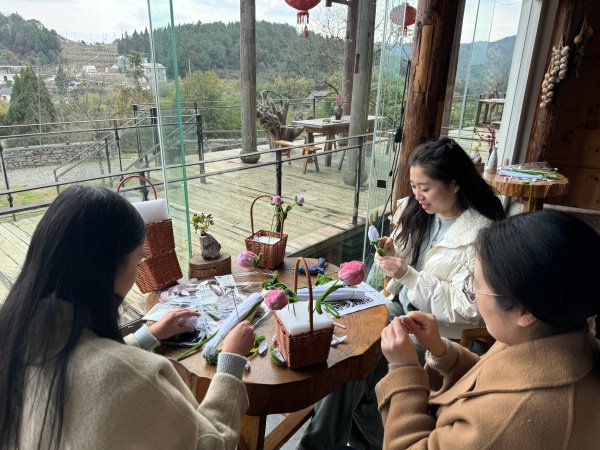 在活動現場,手工制作環節率先點燃了大家的熱情,在老師的指導下,女職工們化身“創意達人”,用五彩斑斕的扭扭棒編制出栩栩如生的花朵、草莓;氣球在指尖翻飛,化作一朵朵繽紛的“永生花”,既有童趣又充滿藝術感。隨后,踏著著春日的陽光,女職工們來到郊野公園開啟“尋寶之旅”,大家手持工具,穿梭于綠意盎然的田間地頭,辨認并采摘薺菜、魚腥草、野蔥等野菜,歡聲笑語回蕩在田野間。春風執起巧手的畫筆,將女性的創意與自然的饋贈,暈染成三八婦女節里最靈動的畫卷。