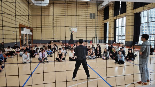 培訓(xùn)當(dāng)天,學(xué)員們在專業(yè)教練的耐心指導(dǎo)下,依次學(xué)習(xí)了站位、基本手型,移動步伐,發(fā)球、墊球、托球等技術(shù)動作,并對場地,規(guī)則等內(nèi)容進(jìn)行簡單介紹。在完成基本教學(xué)之后,教練逐步加大強(qiáng)度,開始結(jié)合發(fā)球,講解進(jìn)攻思路和防守站位,并逐一為所有學(xué)員進(jìn)行接發(fā)球指導(dǎo)。培訓(xùn)接近尾聲,學(xué)員們熱情高漲,技癢難耐,自發(fā)“組局”進(jìn)行團(tuán)隊對抗,并邀請教練在一旁現(xiàn)場指導(dǎo)。球場上學(xué)員們?nèi)褙炞ⅲ瑘鲞呌^眾叫好連連,笑聲和歡呼聲此起彼伏,相互交融。