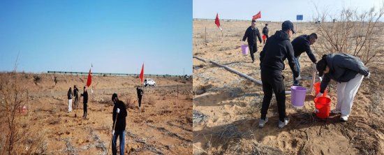 3月12日和19日,阿拉善盟郵政工會和黨建工作部共同組織機關各部室和城區分公司分兩批赴通古淖爾全民義務植樹基地開展“手植一棵樹 綠化一片天”義務植樹活動,以實際行動踐行綠色發展理念,推動綠色郵政建設。