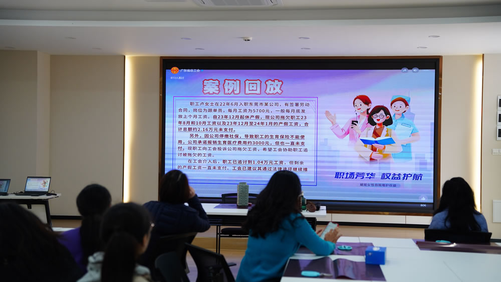活動伊始,以“職場芳華 權益護航——賦能女性自我維護權益”為主題的直播講座正式開啟。講座邀請了資深法律專家,圍繞女職工在職場中可能遇到的勞動權益保障、職業發展限制、生育權益等熱點問題,結合實際案例,深入淺出地進行了詳細解讀。女職工們認真聆聽,主持人與專家在一問一答間,法律知識不再晦澀難懂,女職工們切實增強了依法維權的意識,掌握了更多維護自身合法權益的有效途徑。