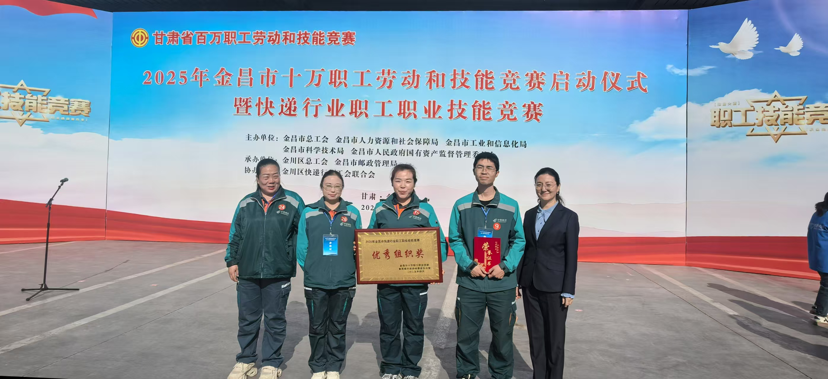 金川路攬投部快遞員張延?xùn)|憑借扎實(shí)的業(yè)務(wù)功底和嫻熟的操作技能,在多物品收寄、易碎品包裝及模擬派送路線設(shè)計(jì)等考核環(huán)節(jié)表現(xiàn)突出。其專業(yè)表現(xiàn)獲得評委組高度評價,最終榮獲大賽二等獎,金昌市分公司獲得優(yōu)秀組織獎。