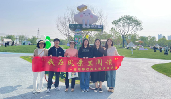4月23日,正值世界讀書日,湖州市公共圖書館全民閱讀月啟動儀式在風景如畫的小梅港體育公園隆重舉行,湖州市郵政工會共派出20名員工積極參與此次活動。