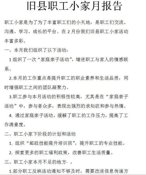 一季度,“基層直通車”還收到234份職工小家“家長”提交的小家“月報”,這些“月報”內容接地氣、有溫度,細致入微地記錄和真實反映了小家當月工作開展情況、工作中存在的不足、基層職工反饋的問題以及下個月的工作安排。這些小家“家長”以認真負責的工作態度和形式多樣的工作方式,確保了上情下達和下情上報對接通暢,發揮了小家“家長”凝心聚情的積極作用,也讓“月報”成為了反映小家真實面貌、促進交流的有效工具。