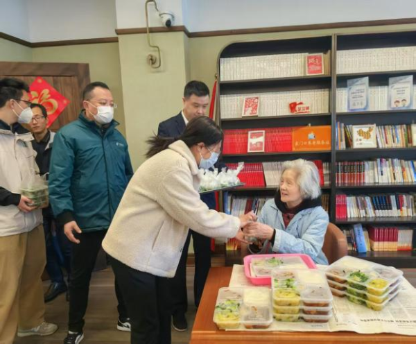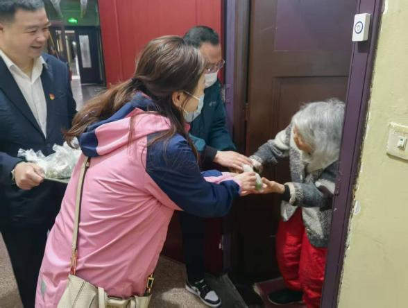 考慮到85歲以上高齡老人行動不便,大家分組前往老人家門口送上慰問服務。老人們接過這些手制的青團時,紛紛露出開心的笑容,還對餐飲中心長期送餐服務表達誠摯的謝意,夸贊郵政大樓食堂為老人們送上的餐食越來越營養可口。