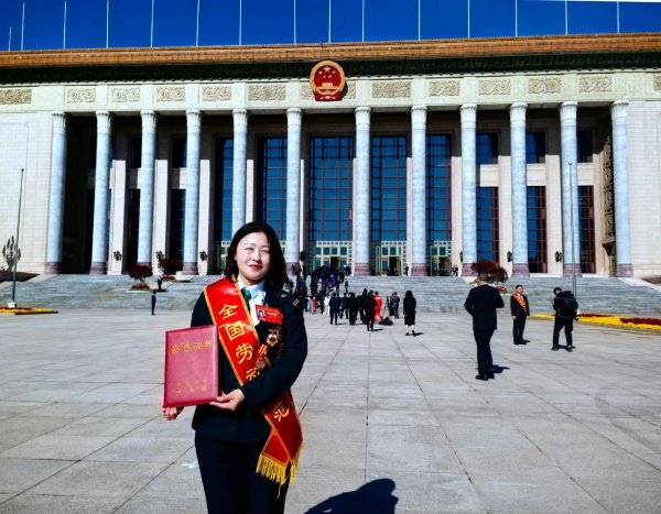 4月28日上午,慶祝中華全國總工會成立100周年暨全國勞動模范和先進工作者表彰大會在北京隆重舉行。天津郵政和平區貴州路攬投部攬投員劉婷獲表彰。