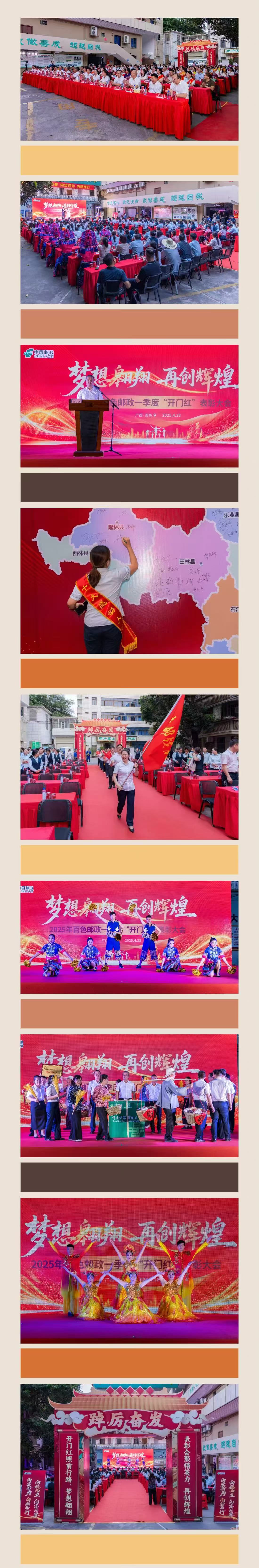 為表彰先進(jìn)、樹立榜樣,4月28日晚,百色市分公司在一樓大院舉行2025年一季度開門紅表彰大會(huì),參加表彰大會(huì)的人員有:市分公司領(lǐng)導(dǎo)班子,市分公司本部各部門領(lǐng)導(dǎo),十大感動(dòng)人物獲獎(jiǎng)人員及家屬;各縣級(jí)分公司、城區(qū)分公司、城區(qū)寄遞事業(yè)部領(lǐng)導(dǎo)班子;各縣級(jí)分公司、城區(qū)分公司金融業(yè)務(wù)部經(jīng)理、督訓(xùn)師、代理金融網(wǎng)點(diǎn)支局長(zhǎng);城區(qū)寄遞事業(yè)部攬投部經(jīng)理;金融、渠道、郵務(wù)、寄遞板塊獲獎(jiǎng)人員。