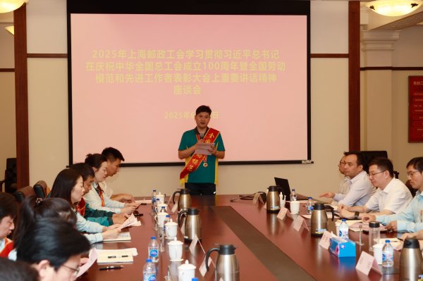 2025年6月10日,“2025年上海郵政工會為慶祝中華全國總工會成立100周年暨全國勞動模范和先進工作者表彰大會上重要講話精神座談會在郵政大樓403會議室召開。會議由市分公司黨委委員、副總經理陸琰主持,市分公司黨委書記、總經理李柏平做重要講話。除邀請2025屆勞動模范及模范集體代表外,會議還邀請了辦公室、人力資源部、黨委黨建工作部(團委)、工會等相關部室負責人、各二級單位工會主席、青年優秀員工代表,一線先進員工代表一同參會。