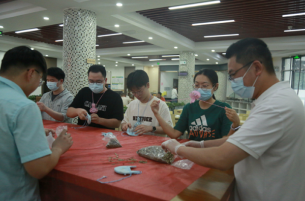 在香囊制作區的桌面上,工會工作人員講解著“驅邪避疫”的端午習俗。大學生們小心翼翼地將各種香料裝入香袋,草木氣息喚起了鄉愁,“我老家奶奶也做香囊,她總說艾草要曬透才夠香。”“我家也是,每年端午門楣上都要掛菖蒲。”小小的香囊此刻已成了情感的紐帶,一端系著故鄉親人,一端連著職場溫度。