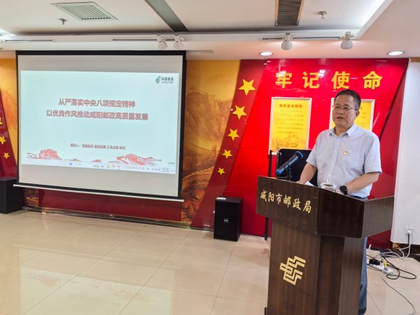 6月23日下午,副總經理、工會主席陳杰以《從嚴落實中央八項規定及其實施細則精神,以優良作風推進咸陽郵政高質量發展》為題,為分管部門黨員干部講授專題黨課。黨課立足企業發展實際,從五個方面進行了系統闡述: