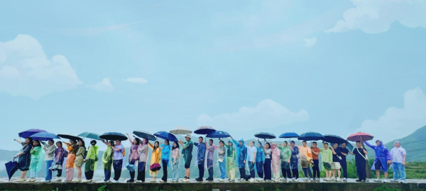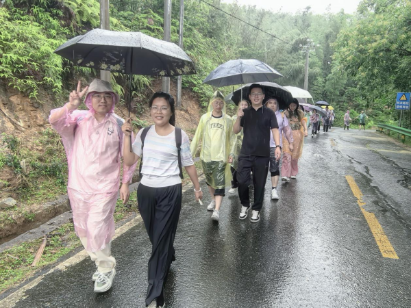受臺風影響,雨時大時小,一直沒有停歇,但大家的熱情不減,依然興致滿滿。大家配合默契,有的背提重物,有的主動打傘,有的相互照應,在歡聲笑語中一路前行。經歷了長途跋涉和風吹雨打的考驗,隊伍順利抵達紅豆杉古樹終點站,大家在蔥郁的古樹下合影,定格下彼此間珍貴的友誼。