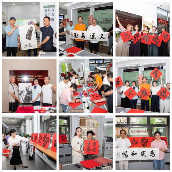 7月4日上午,為助力金融網(wǎng)點迎戰(zhàn)旺季營銷,提升客戶粘合度,以更加新穎的形式賦能網(wǎng)點發(fā)展,浙江省郵政文聯(lián)直接把創(chuàng)作現(xiàn)場開進了虹橋網(wǎng)點的工作現(xiàn)場,面對面參與和大客戶的聯(lián)誼活動。 “錢老師,我外甥女今年高考考上理想大學(xué)了,可以寫‘天道酬勤’這四個字送給她嗎?”“馬老師,可以給我多寫幾個‘福’字嗎,我要前門后門都貼起來”“謬老師,我想要‘平安喜樂’、‘開業(yè)大吉’……”在樂清市分公司虹橋網(wǎng)點廳堂內(nèi)人聲鼎沸、熱鬧非凡,來自網(wǎng)點存量客戶、老協(xié)書法愛好者及周邊村社的婦女主任50余人早早就來到了網(wǎng)點排隊等候。