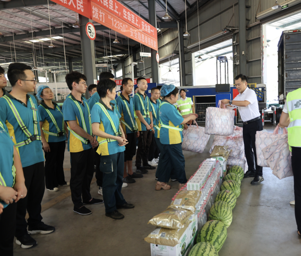 在江南郵件處理中心,慰問活動(dòng)正式開展。張強(qiáng)副書記為每一位投遞員送上夏涼被、綠豆湯和西瓜等清涼飲品,對(duì)他們?cè)谘籽紫娜找琅f堅(jiān)守崗位,全力做好普遍服務(wù)、特殊服務(wù)、寄遞服務(wù)以及近期高考錄取通知書投遞等重要工作表示衷心的感謝。他高度肯定了投遞員們?yōu)楸U宵h政機(jī)關(guān)和市民用郵需求所付出的辛勤努力,強(qiáng)調(diào)了郵政服務(wù)在社會(huì)運(yùn)轉(zhuǎn)中的重要作用。
