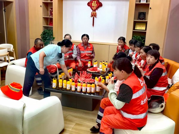 基層落地,服務暖心。各基層工會立足實際,精準落實服務:依托“職工小家”、“投遞員小家”、“郵愛驛站”等陣地,將熬制好的綠豆湯直接送至工位,為環衛工人等戶外勞動者提供休息場所及西瓜、飲品等貼心服務,彰顯郵政企業社會擔當,同時還配備藿香正氣水、清涼油等應急藥品,確保清涼觸手可及;針對戶外勞動者暴曬時間長、體力消耗大的特點,各基層工會動態補充飲料、西瓜等消暑飲品,確保綠豆湯“隨熬隨送”、飲品“隨空隨補”、藥品“隨用隨添”,讓“清涼支撐”時刻在線。