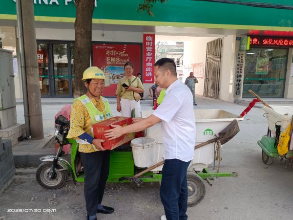 在鐘祥郵政“郵愛驛站”內,寬敞明亮的休息區涼意襲人,配備齊全的防暑物資擺放有序。7月28日上午,20余名戶外工作者齊聚驛站,參加“夏送清涼”專題活動。鐘祥市郵政工會主席張曉華親自為到場的環衛工人、外賣騎手等送上清涼大禮包,內含解暑飲品、防暑藥品等實用物資。“大家在堅守崗位的同時,一定要注意防暑降溫,確保作業安全。”張曉華的暖心叮囑讓在場戶外勞動者們倍感溫馨。