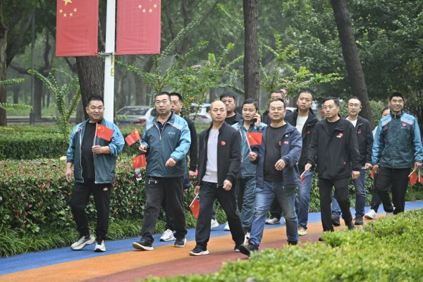 與此同時,其余職工踏上健步走之旅。大家手持小國旗,沿著步道悠然前行,時而駐足拍攝“我與國旗同框”的紀念照,時而交流工作中的趣事。