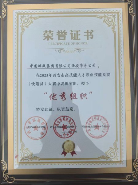 9月25日,西安市郵政管理局舉辦2025年西安市高技能人才職業技能競賽快遞員大賽頒獎儀式,西安市分公司榮獲“優秀組織獎”。