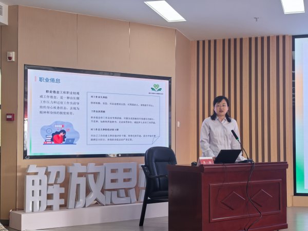 講座的主題是《職業(yè)人群心理健康的維護(hù)與促進(jìn)》,主講老師是來(lái)自空軍軍醫(yī)大學(xué)西京醫(yī)院心身科副主任吳迪。講座內(nèi)容包括職場(chǎng)中常見(jiàn)的壓力、抑郁、焦慮等常見(jiàn)的心理問(wèn)題及處理,分析了各種情緒、心理的區(qū)別和調(diào)解的方法,用通俗易懂的語(yǔ)言和典型案例,為職工有效應(yīng)對(duì)工作壓力、保持良好心理狀態(tài)提供了專業(yè)指導(dǎo)。