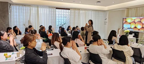 活動伊始,芳香療愈師老師向大家介紹了精油的來源與萃取工藝,讓職工親身體驗了野橘、薄荷兩種香型對人情緒的影響和放松身心的作用,讓職工在嗅覺與呼吸的調節中對精油的療愈功效有了全新認識。在隨后的互助頭療、手療體驗活動中,參與活動的職工們兩人一組,在老師的帶領下學習頭療按摩、手療按摩的放松技巧,讓大家在相互按摩的過程中通過指尖傳遞溫暖,感受關懷與信任,釋放工作累積的緊張與疲勞。