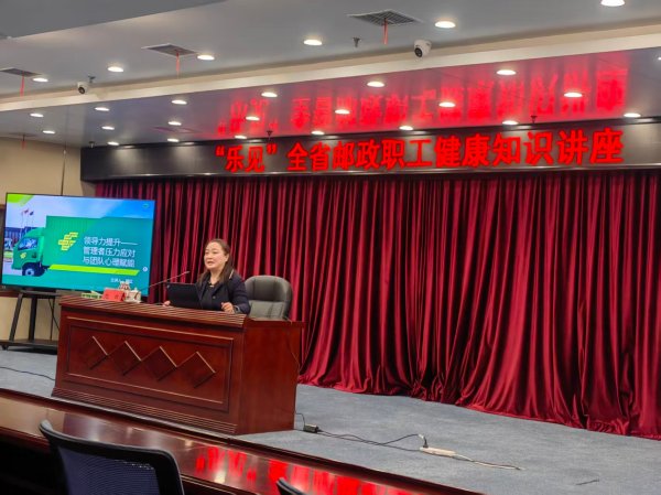 近日,為全面提升干部職工健康意識和心理綜合素質,以積極的心態面對生活,以澎湃的激情投身旺季生產,省郵政工會特邀請湖北省陽光基金心里健康宣講團講師、華中師范大學博士心理專家舉辦“樂見”健康知識講座,此次活動以現場講解、電視電話會議和線上直播方式同時進行,吸引了眾多郵政職工積極參與,取得了良好的效果。