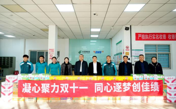 11月11日,駐馬店市郵政分公司黨委書記、總經理,黨委委員、副總經理、工會主席等一行先后到駐馬店郵區中心、驛城區分公司攬投二部、天中區分公司開發區攬投部慰問,給奮戰在“雙十一”一線的基層員工等送去牛奶、方便面、礦泉水等慰問品,對大家堅守崗位、默默奉獻致以誠摯感謝,同時為大家加油鼓勁、提振士氣,現場互動頻繁、氛圍溫馨熱烈。