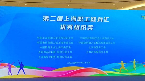11 月 29 日,上海市第二屆職工健身匯閉幕式暨職工健身操(工間操)決賽圓滿落幕,上海郵政健身操隊憑借過硬實力勇奪 A 組(規定動作)金獎,郵政工會同步斬獲優秀組織獎,充分展現企業職工昂揚向上的精神風貌與團結奮進的磅礴力量。