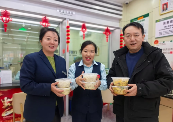 冬至當天,一線網點依舊繁忙,員工們專注辦理業務。配送人員帶著熱氣騰騰的餃子到達時,大家停下手中的工作,接過餃子,臉上露出笑容。同事之間互相傳遞餃子,分享節日的喜悅,網點內充滿溫馨的氣氛。員工們表示:這次活動讓他們感受到公司的溫暖,緩解了工作中的疲憊,心里有說不出的感激。