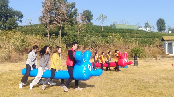 在毛毛蟲項目中,隊員們騎乘充氣毛毛蟲同步發力,喊著整齊劃一的口號穩步向前。大家步伐協同、默契配合,腳下的毛毛蟲在賽道上快速穿梭,身后傳來陣陣加油吶喊聲,每一步都凝聚著團隊的向心力。