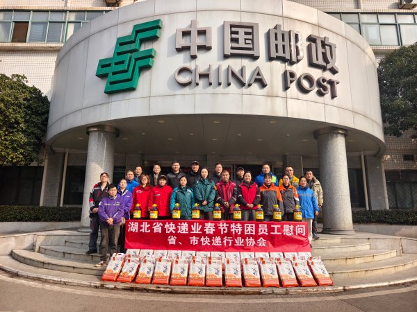 1月28日上午,湖北省快遞協會聯合市快遞協會在武漢郵區中心開展2026年度春節特困員工慰問活動。省、市快遞行業協會相關領導出席,向各快遞企業40余名特困員工集中發放慰問金和物資,并傳達了組織的新春問候。