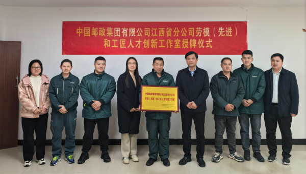 為大力弘揚勞模精神、勞動精神、工匠精神,充分發揮勞動模范在技術創新、課題攻關、項目攻堅等方面的示范引領作用,有效激發郵政職工創新創造內生動力,2026年1月15日,贛州市郵政工會黨委委員、副總經理、工會主席肖翔來到定南縣,為不久前被江西省分公司、江西省郵政工會聯合命名為“中國郵政集團有限公司江西省分公司勞模(先進)和工匠人才創新工作室”的“定南縣分公司陳久富勞模創新工作室”進行授牌。贛州市郵政工會副主席饒曄珠,定南縣分公司領導班子和陳久富勞模創新工作室全體成員參加了授牌儀式。