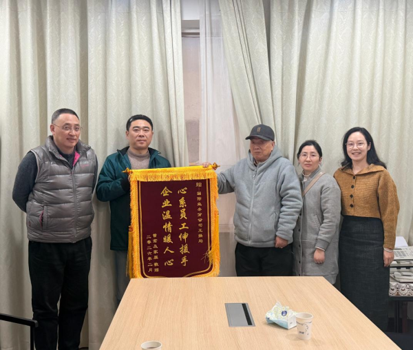近日,職工家屬特意為分公司送來錦旗,以最莊重的方式表達對分公司及職工們的深切謝意,錦旗上“心系員工伸援手,企業溫情暖人心”的真摯話語,既承載著家屬滿滿的感恩之情,也彰顯了分公司與職工之間親如一家、守望相助的深厚情誼。