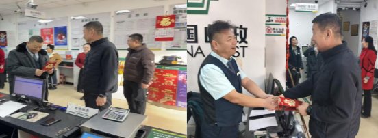 在攬投部,銀韶虹主席和寄遞事業(yè)部副劉燕林總經(jīng)理與攬投員親切交談,并為他們送上了節(jié)日慰問品,感謝他們的春節(jié)期間的辛勤付出,并大家送上新春美好祝愿。希望大家在干好本職工作的同時,做好防寒保暖和安全防護。