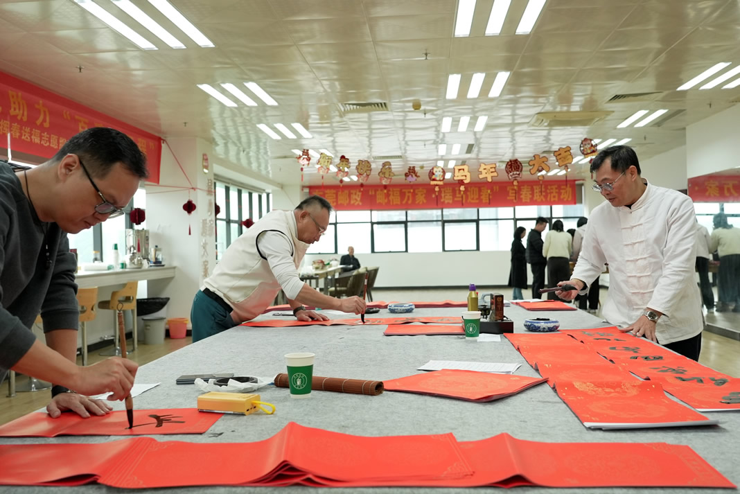 茶山、城區(qū)、石碣、石龍等各分會也同步開展寫春聯(lián)、送福字迎新春活動,紛紛邀請書法功底扎實的老師現(xiàn)場創(chuàng)作,書寫馬年祝福、傳遞郵政溫情,活動氛圍熱烈,深受廣大職工喜愛與好評。