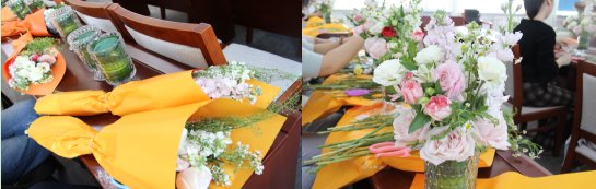活動現(xiàn)場,花香四溢、暖意融融。工作人員早已提前備好各色鮮切花、精美花瓶等材料,嬌艷的玫瑰、雅致的洋桔梗、清新的小雛菊、靈動的滿天星錯落擺放,等待著女神們親手賦予它們新的生機與美感。