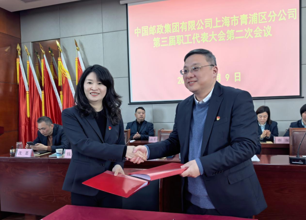 會上行政方、工會方共同簽訂了《中國郵政集團有限公司上海市青浦區分公司2026年度行政與工會平等集體協商實事項目》。