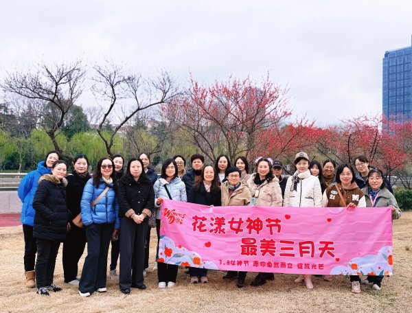 下午13時,女職工們在單位一樓大廳集合,隨后沿淀浦河綠地公園方向步行。初春時節,淀浦河畔梅花競相綻放,玫紅相間的花簇綴滿枝頭,與潺潺流水相映成趣。大家三五成群,或駐足拍照留念,或漫步花間小徑,在歡聲笑語中感受盎然春意。