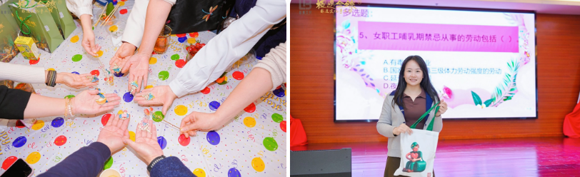活動現場亮點紛呈、暖意十足。特邀市婦聯創業導師、禮遇金鑲品牌創始人黃學超老師,現場指導女職工開展掐絲琺瑯胸針手工制作,讓大家在指尖靈動間感受非遺技藝的匠心魅力,在沉浸式體驗中豐富精神文化生活、陶冶情操、舒緩工作壓力。同時,圍繞婦女權益保護、女職工勞動保護、企業形勢任務及企業文化等內容開展趣味有獎知識問答,氛圍熱烈活躍,既普及了相關知識,也進一步凝聚思想共識,增強女職工對企業發展的認同感與歸屬感。活動還為獲獎先進個人、集體送上《陽光心態》書籍,為知識問答獲獎者送上郵政漫畫健康包,把暖心關懷精準送到女職工心坎上。