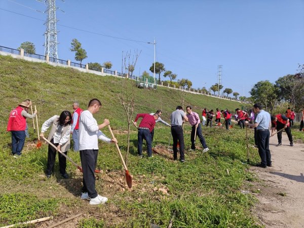 中堂分會開展百果園植樹活動,10余名員工合力栽植百香果樹苗,以實際行動響應植樹節號召,為廠區添綠、為發展增色,踐行生態保護理念。