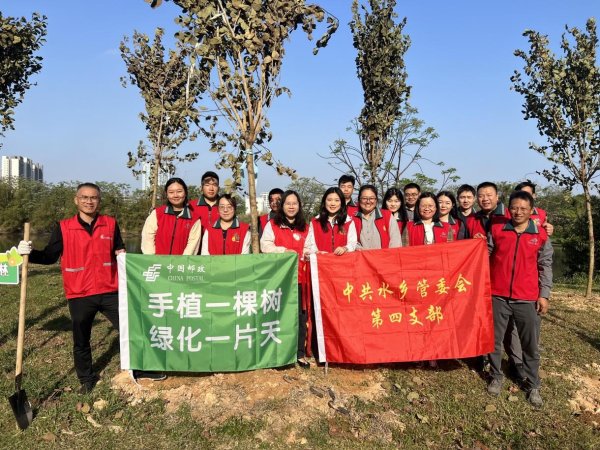 石碣分會聯合唐洪社區開展“手植一棵樹,綠化一片天”共建植樹活動,班子成員帶頭參與,6名員工精心栽植莞香樹3棵,以鄉土珍木為綠美東莞添彩,踐行綠色使命、傳遞郵政溫度。