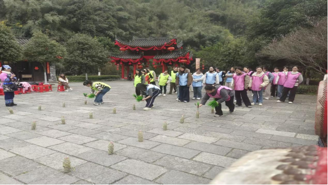 活動(dòng)現(xiàn)場(chǎng),職工們身著統(tǒng)一馬甲,分成多支隊(duì)伍參與插秧體驗(yàn)、運(yùn)面粉接力、踢毽子比賽三項(xiàng)趣味項(xiàng)目。在模擬插秧環(huán)節(jié),大家手持秧苗,在苗寨師傅的指導(dǎo)下認(rèn)真學(xué)習(xí)插秧技巧,俯身彎腰、精準(zhǔn)投放,在歡聲笑語(yǔ)中體會(huì)“粒粒皆辛苦”的農(nóng)耕艱辛,感受勞動(dòng)帶來(lái)的成就感。運(yùn)面粉接力賽將氛圍推向高潮,參賽隊(duì)員嘴銜紙片、肩挑扁擔(dān),小心翼翼地護(hù)送面粉前行,既要保證速度又要避免灑落,充分展現(xiàn)了郵政職工團(tuán)結(jié)協(xié)作、精益求精的職業(yè)素養(yǎng)。踢毽子比賽中,五彩毽子在空中翻飛,職工們身姿輕盈、配合默契,圍觀同事加油鼓勁、掌聲不斷,盡顯昂揚(yáng)向上的精神風(fēng)貌。