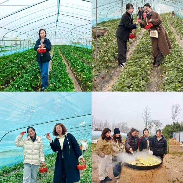 草莓采摘區(qū)內(nèi),女職工們提著小籃,穿行在綠葉掩映的田壟間,親手采擷春日里第一抹紅潤(rùn)鮮甜的草莓。在農(nóng)家土灶區(qū)域,大家分工協(xié)作,燒火、洗菜、切菜,用最樸素的方式烹飪出地道的“大鍋燴菜”。活動(dòng)尾聲,大家圍坐分享熱氣騰騰的流心蜜薯,暢談勞動(dòng)帶來的滿足與快樂。