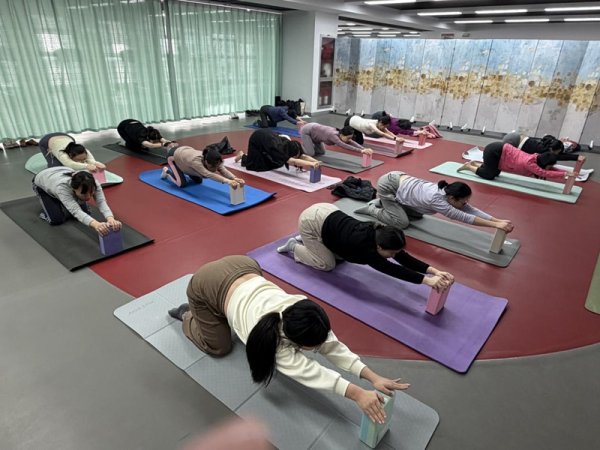 3月13日,瑜伽小組首次開課,職工們暫別忙碌,伴著舒緩音樂靜享療愈時光。在專業(yè)老師指導(dǎo)下,大家從冥想呼吸切入,開展肩頸拉伸、基礎(chǔ)體式練習(xí),老師逐一對動作細(xì)節(jié)耐心糾正,眾人在一呼一吸間舒 展身心,有效緩解伏案工作的身體疲憊和職場壓力,實現(xiàn)身心雙重放松。
